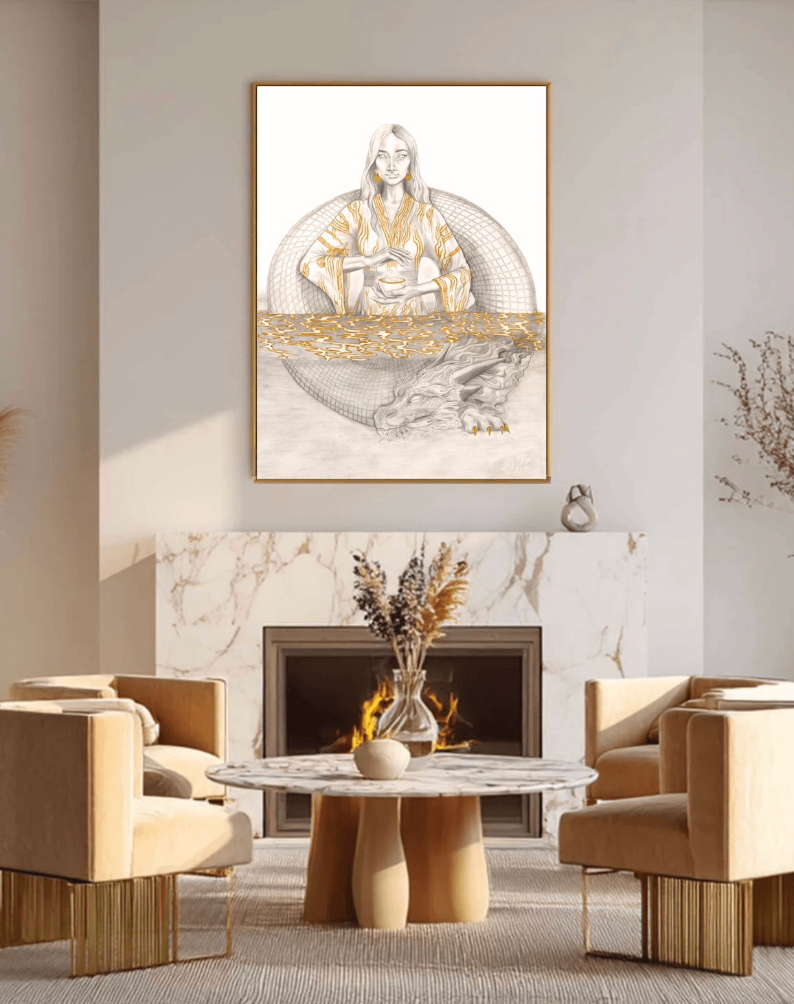 The gold then catches the light, bringing the print to life.